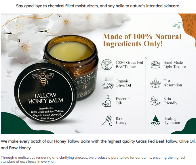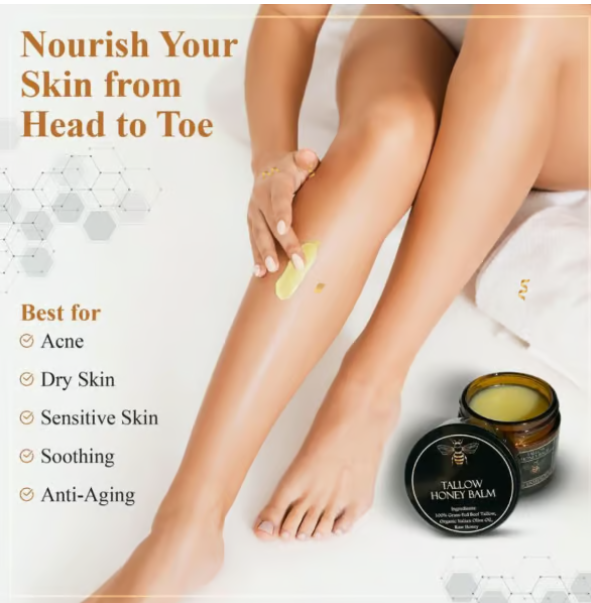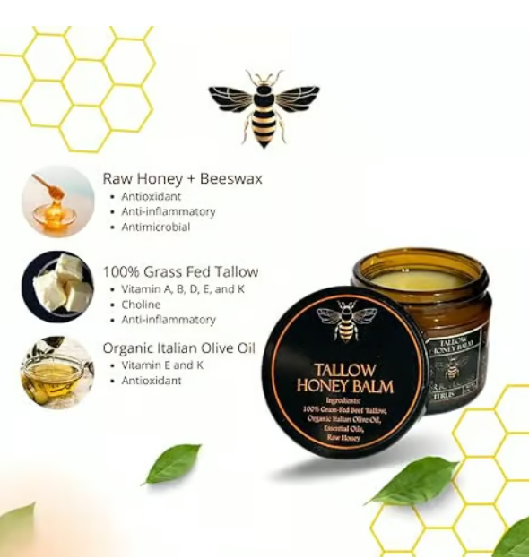 🍯Handmade Organic Grass-Fed Beef Tallow Balm with Raw Honey 🌿