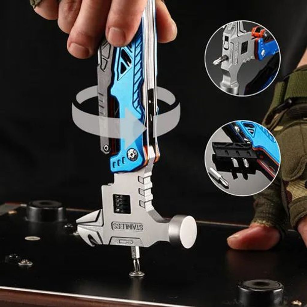 MULTI TOOL - This all-in-one tool hammer has most of the tools you need to carry out small outdoor or home projects, including heavy-duty mini hammers, adjustable wrenches, hacksaws, pliers, pocket knives, screwdrivers, can openers and more.