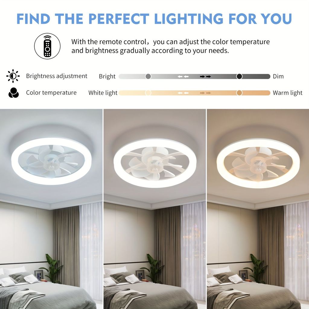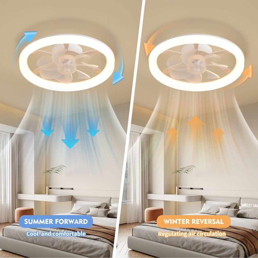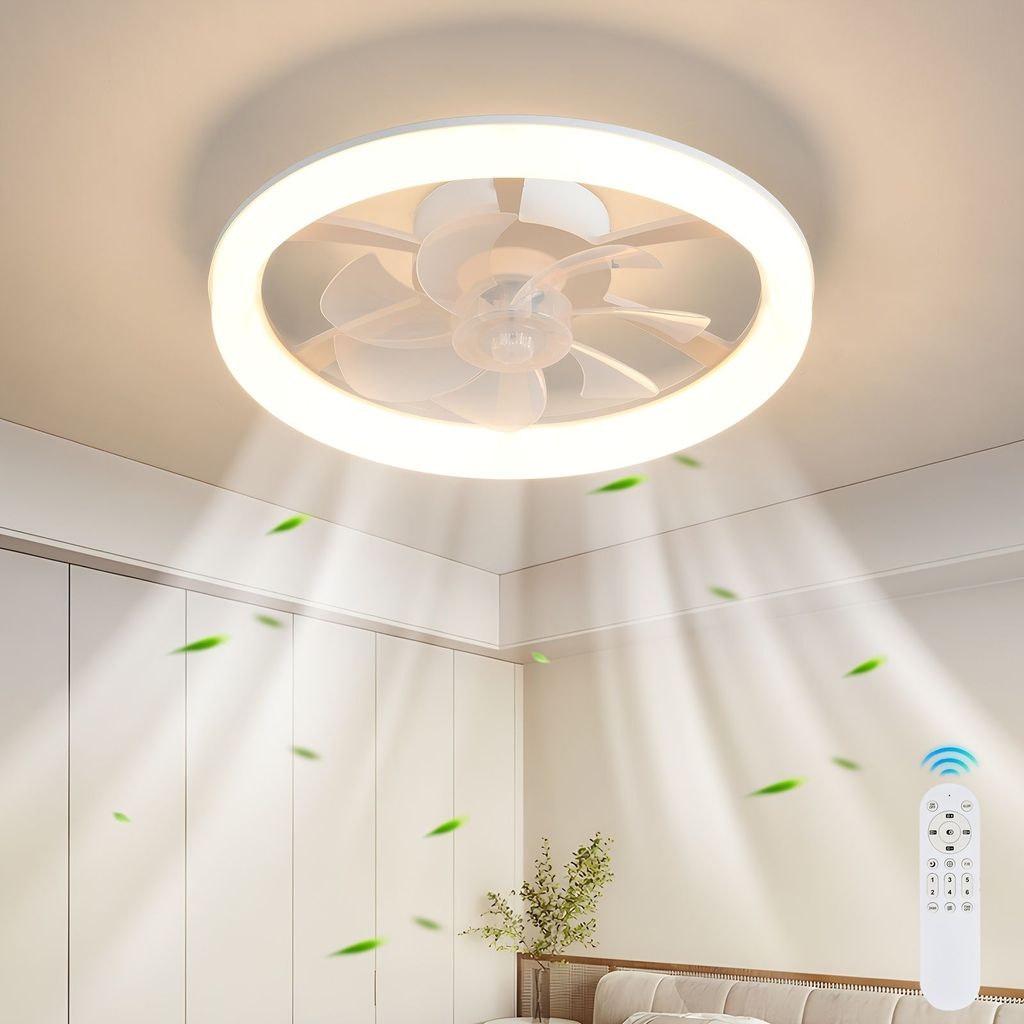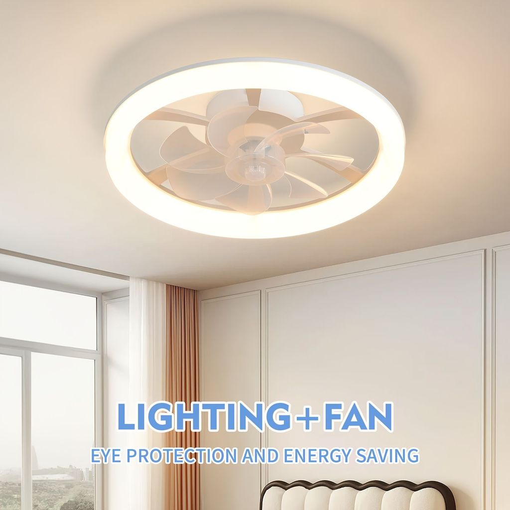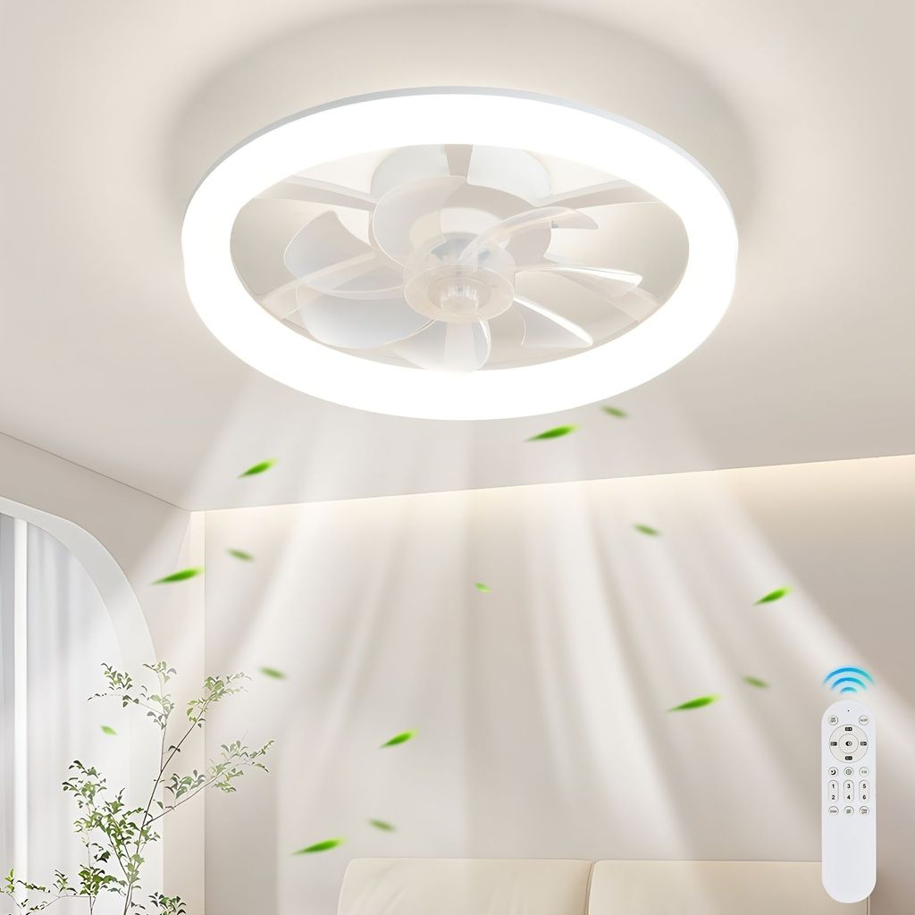 1pc Ceiling Fans with Lights, 44.5cm 17.51inch LED Fan light kit, Flush Mount Ceiling Fan with Remote, white Low Profile Ceiling Fan with 6 Wind Speeds, Smart Dimmable for Suitable for living room, bedroom, attic, kitchen, laundry room, dining room