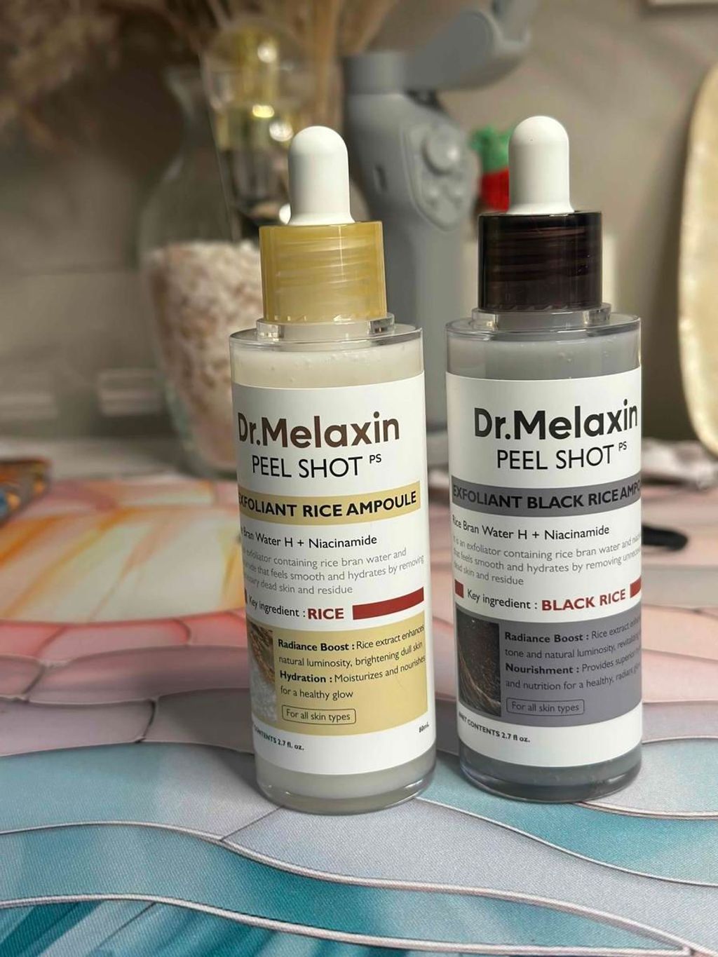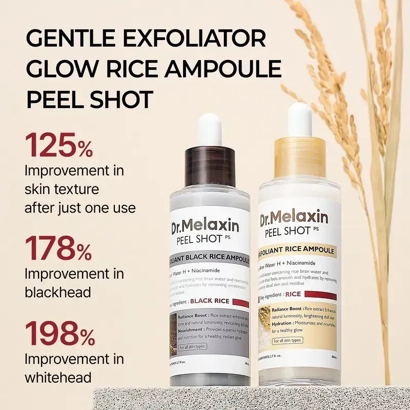 Dr.Melaxin Official Peel Shot Glow Rice Ampoule Duo - Serums for Brightening, Exfoliating, and Moisturizing - Suitable for All Skin Types
