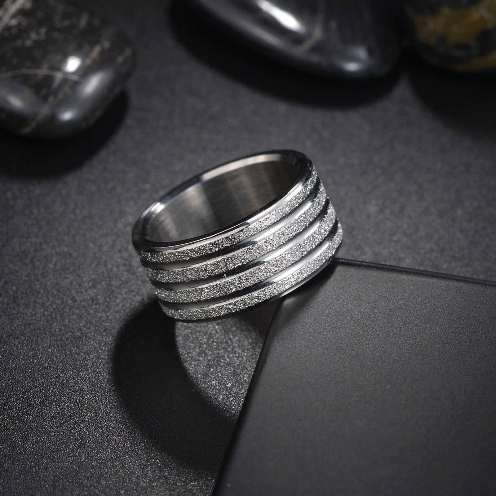 European And American 10MM Wide Titanium Steel Frosted Men's Ring