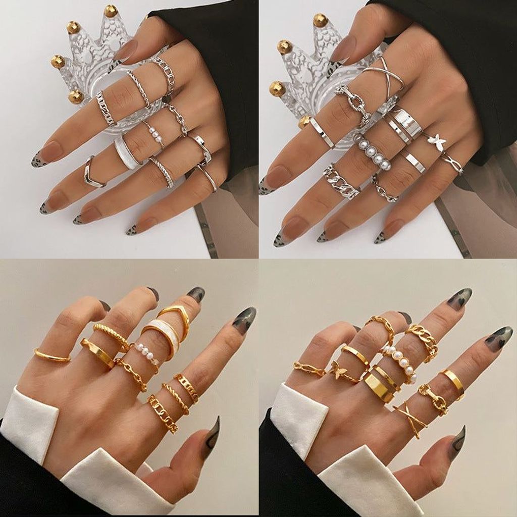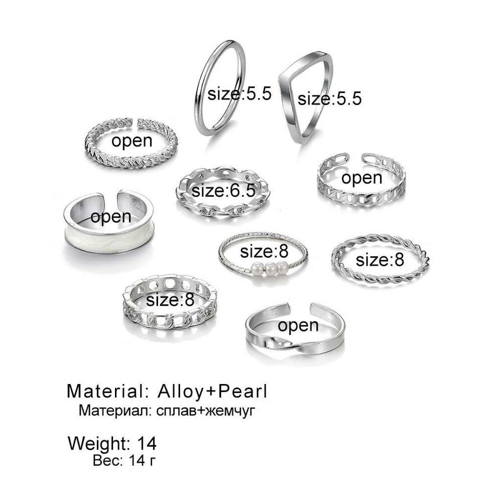 European And American Butterfly Pearl Ring 10-piece Metal Dripping Pearl Ring Wholesale
