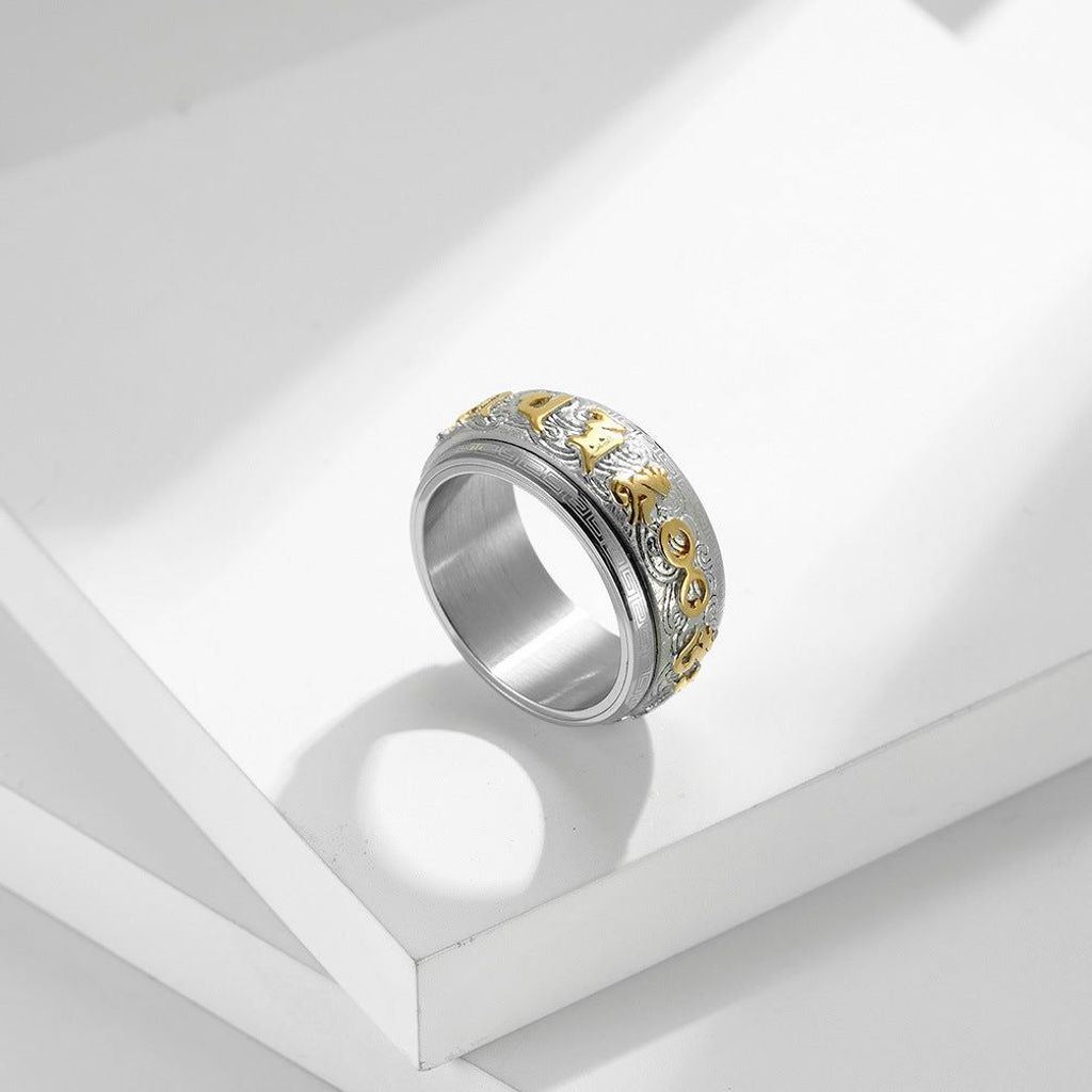 Mantra Ring Huiwen Guochao Buddhist Stainless Steel Jewelry