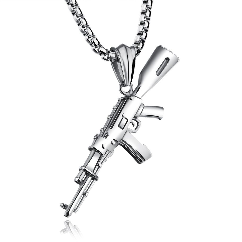 Men's AK47 Titanium Steel Street Hip-hop Domineering Stainless Steel Gun Necklace