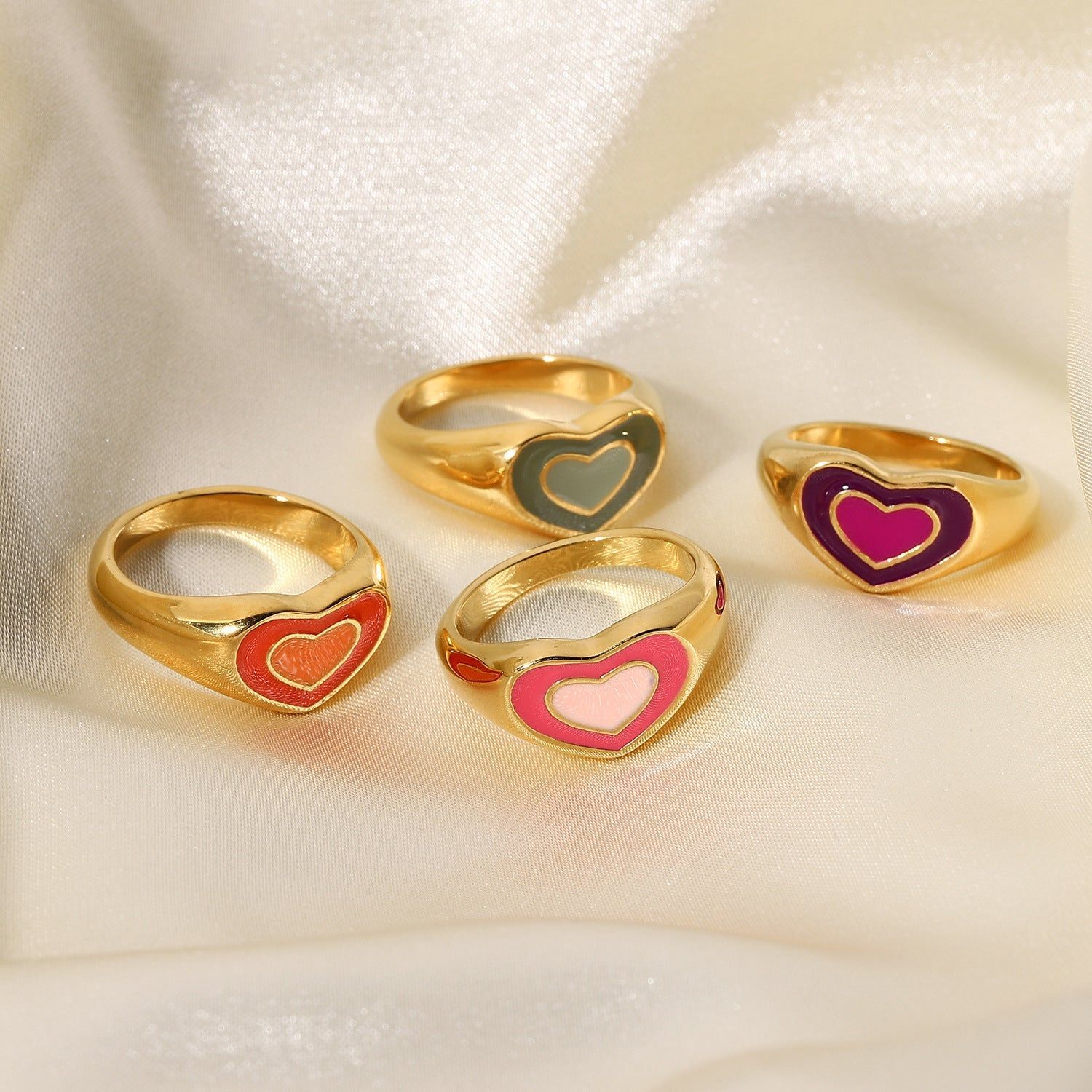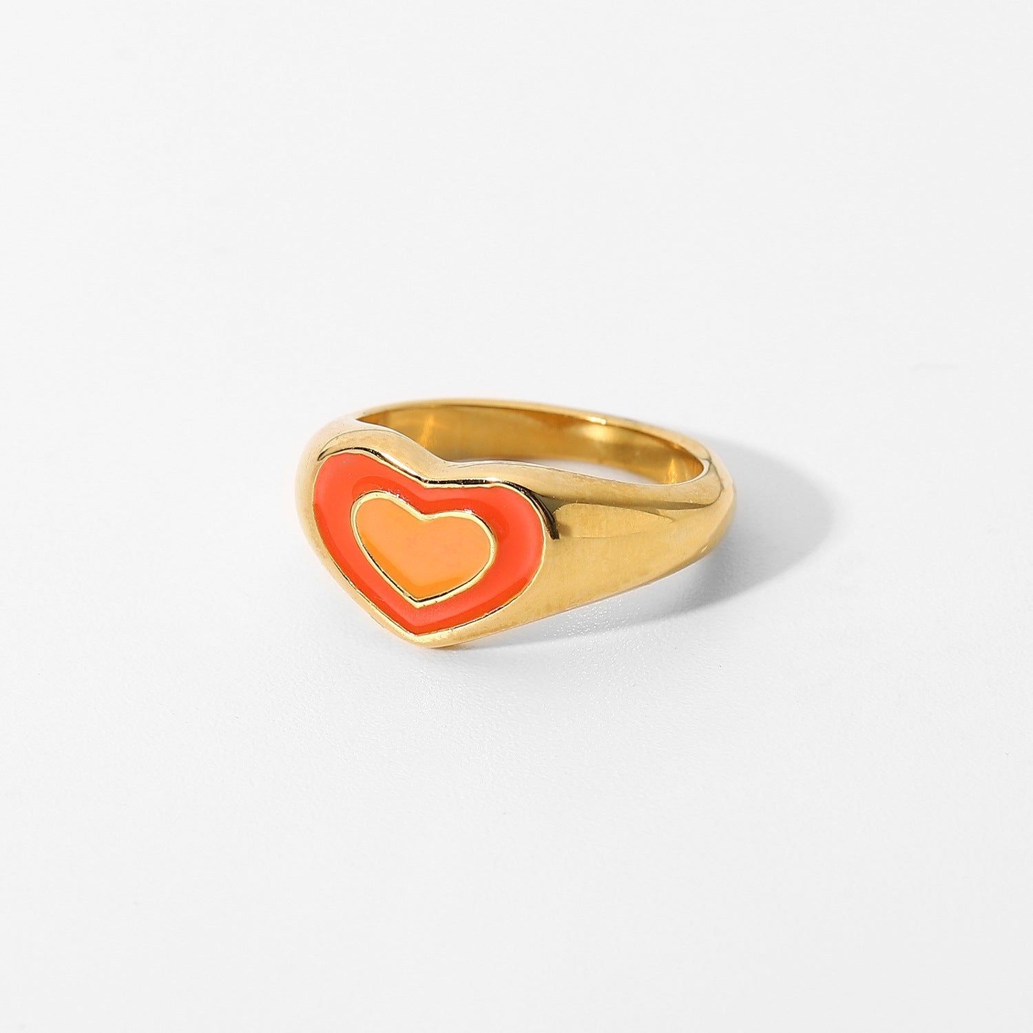 Metal Love Heart Ring Titanium Steel Peach Heart Ring