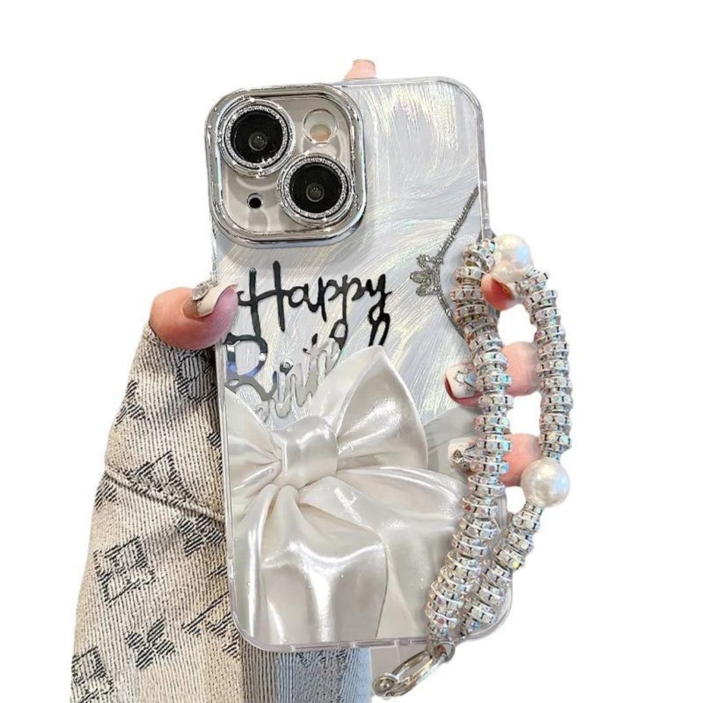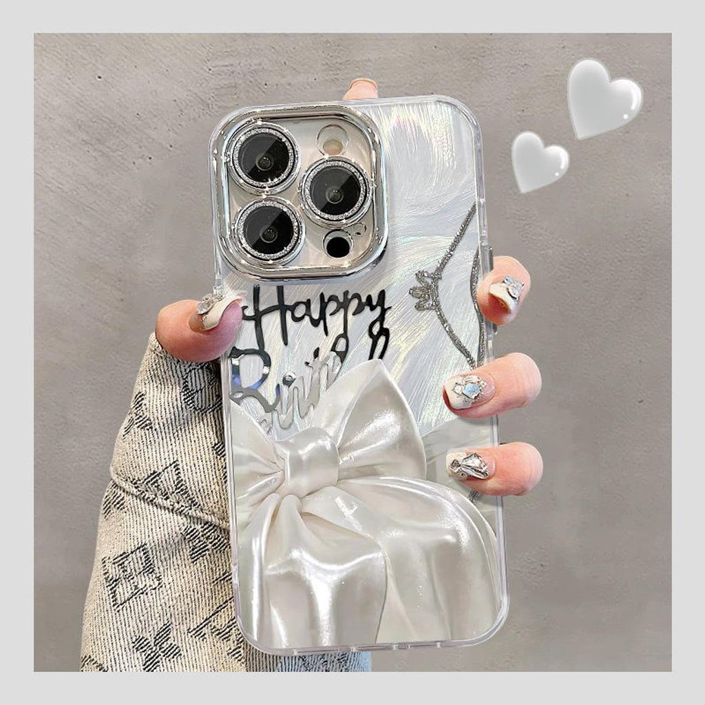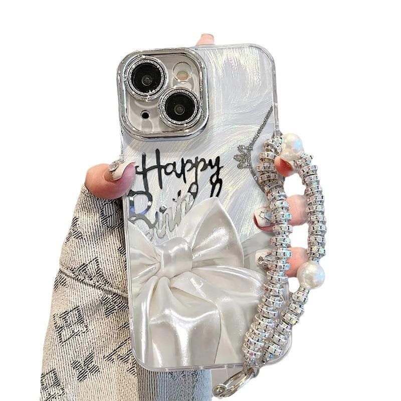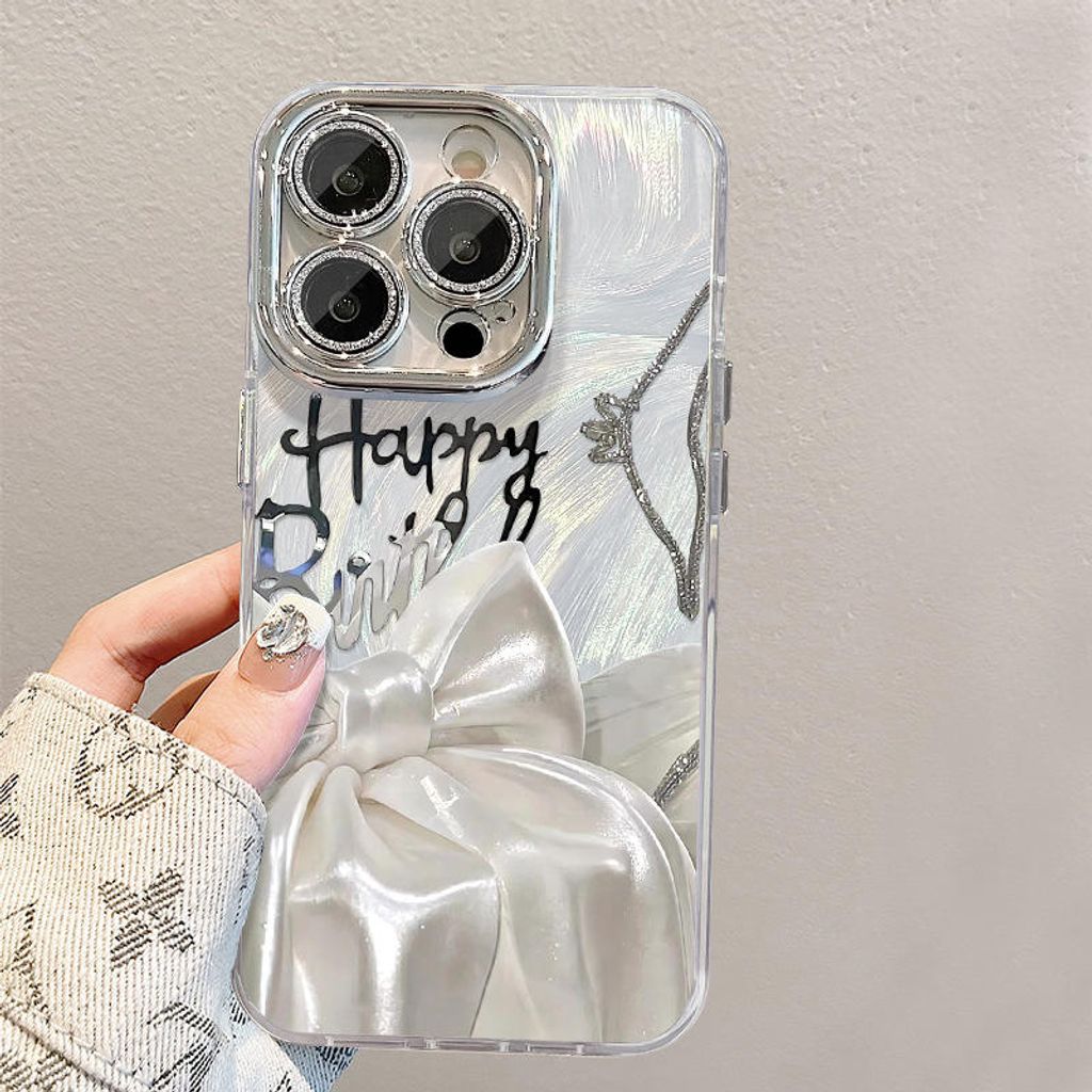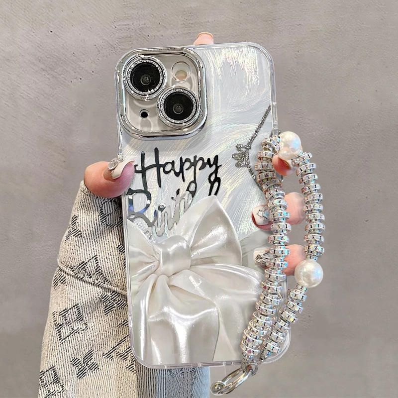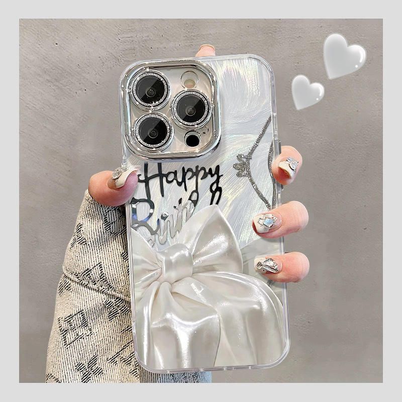 Mobile Phone Case for iPhone 16 Pro Max Silk Bow Lanyard Bracket with Mirror Frame Drop-resistant for iPhone 15 14 13 Pro Max