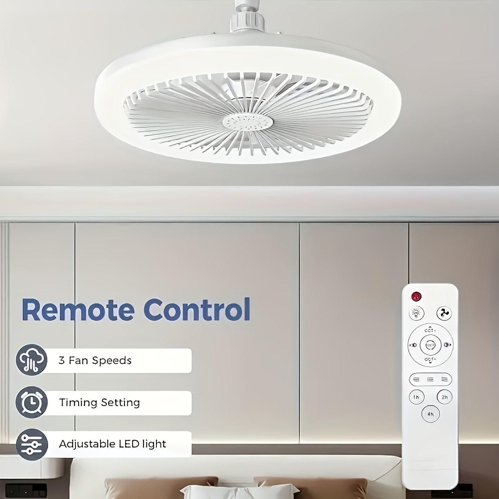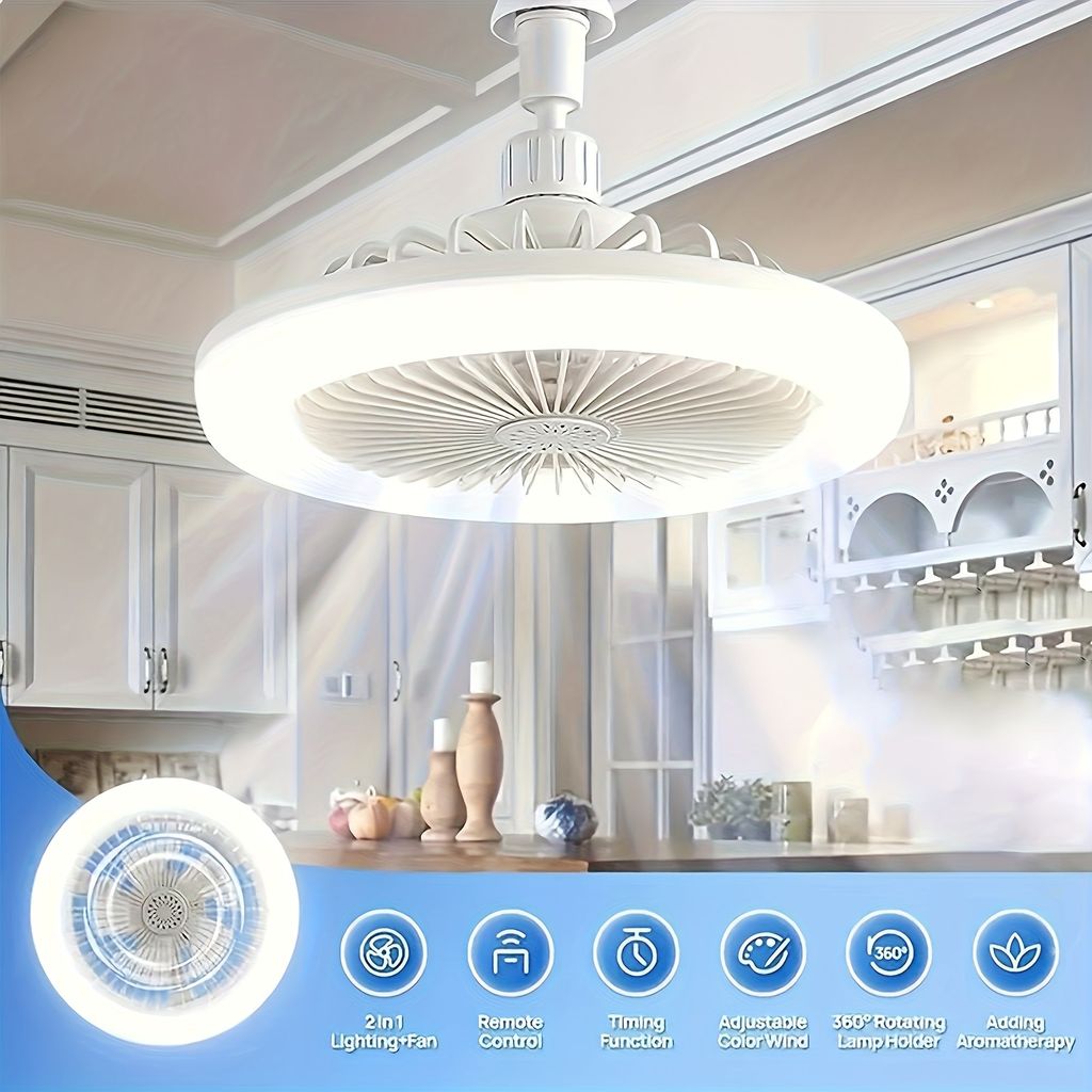 Modern White LED Ceiling Fan Light with Remote Control – 50W, 3-Speed Adjustable Fan & 3 Color Temperatures (3000K-6500K), Dimmable, Timer Function, E26 Base for Bedroom, Kitchen, Closet, and More, Kitchen Illumination | Minimalist Light Fixture | Integrated Light Fan