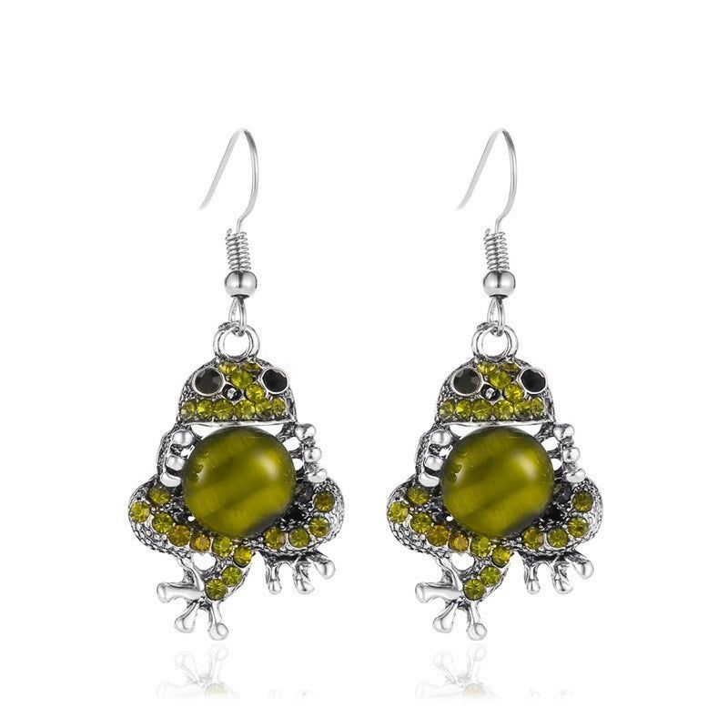 Opal Cute Frog Earrings Elastic Ring