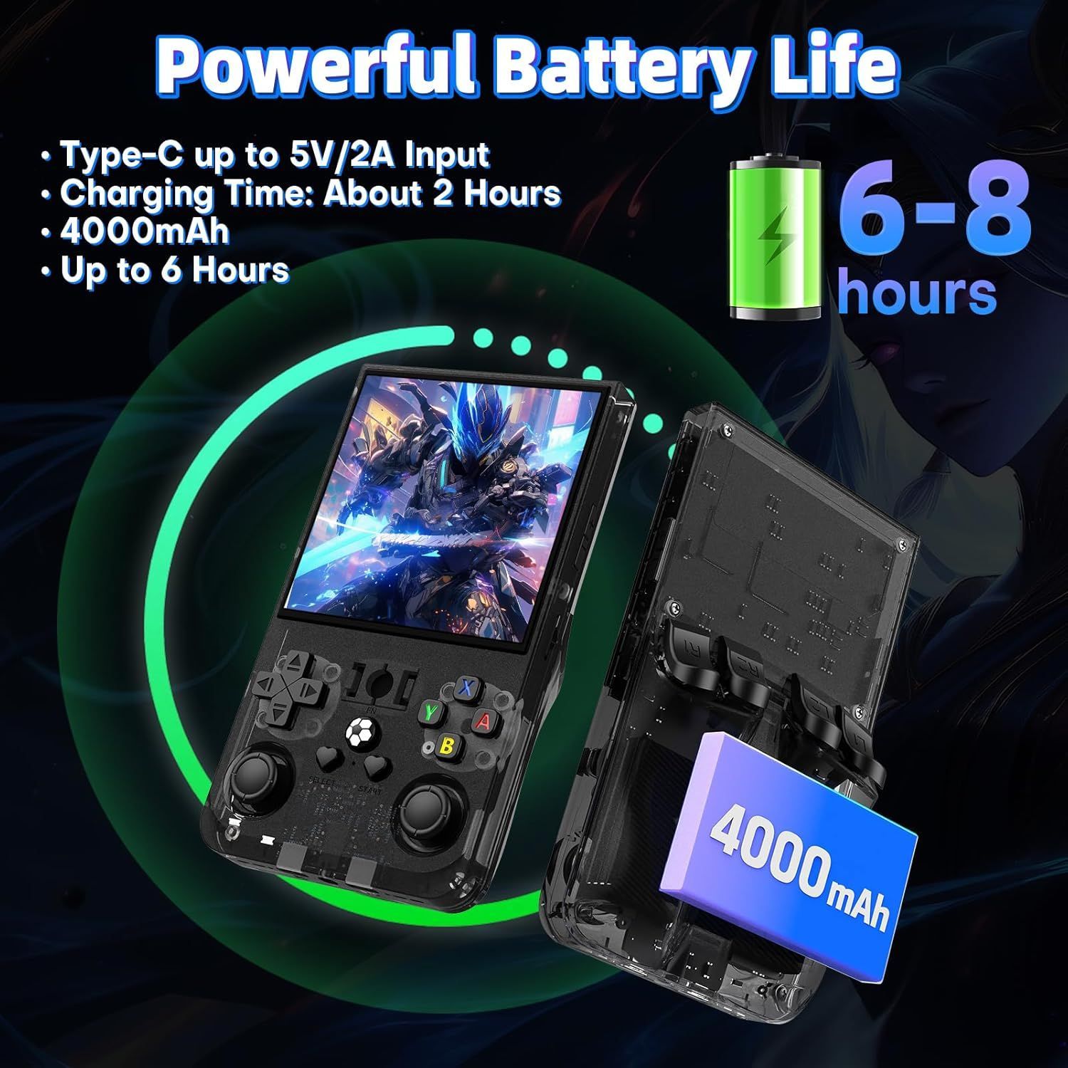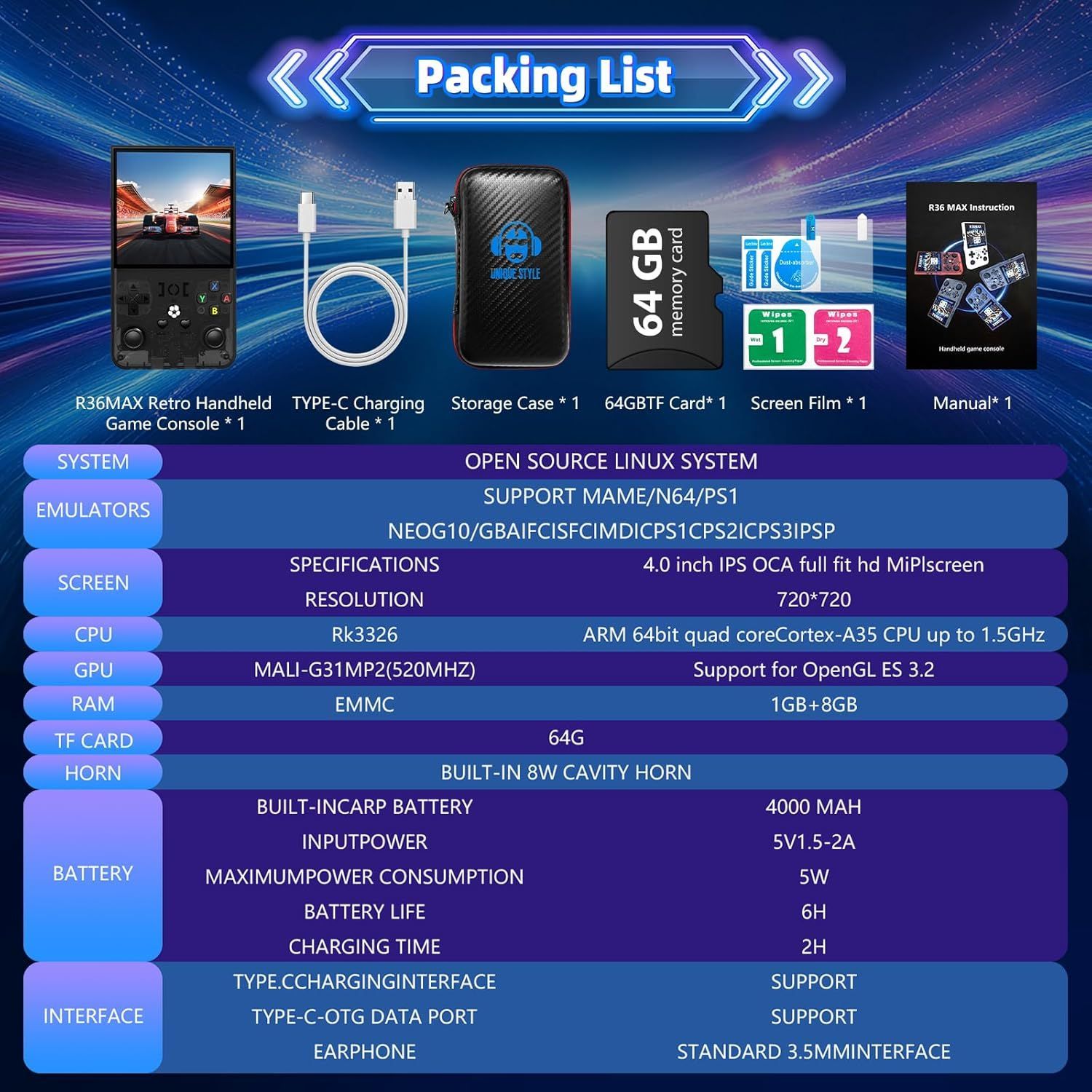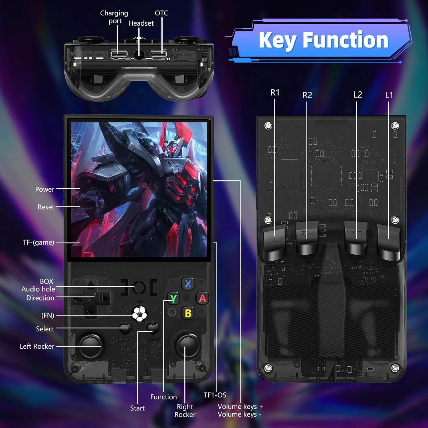- 【R36 Max New System】 The handheld game console adopts open source Linux game system with good stability, which enables it to provide provides a more responsive and smoother experience. Pre-installed with 18000+ games, it supports 30+ mainstream simulators, and TF card independent system and game storage design allows for adding more games