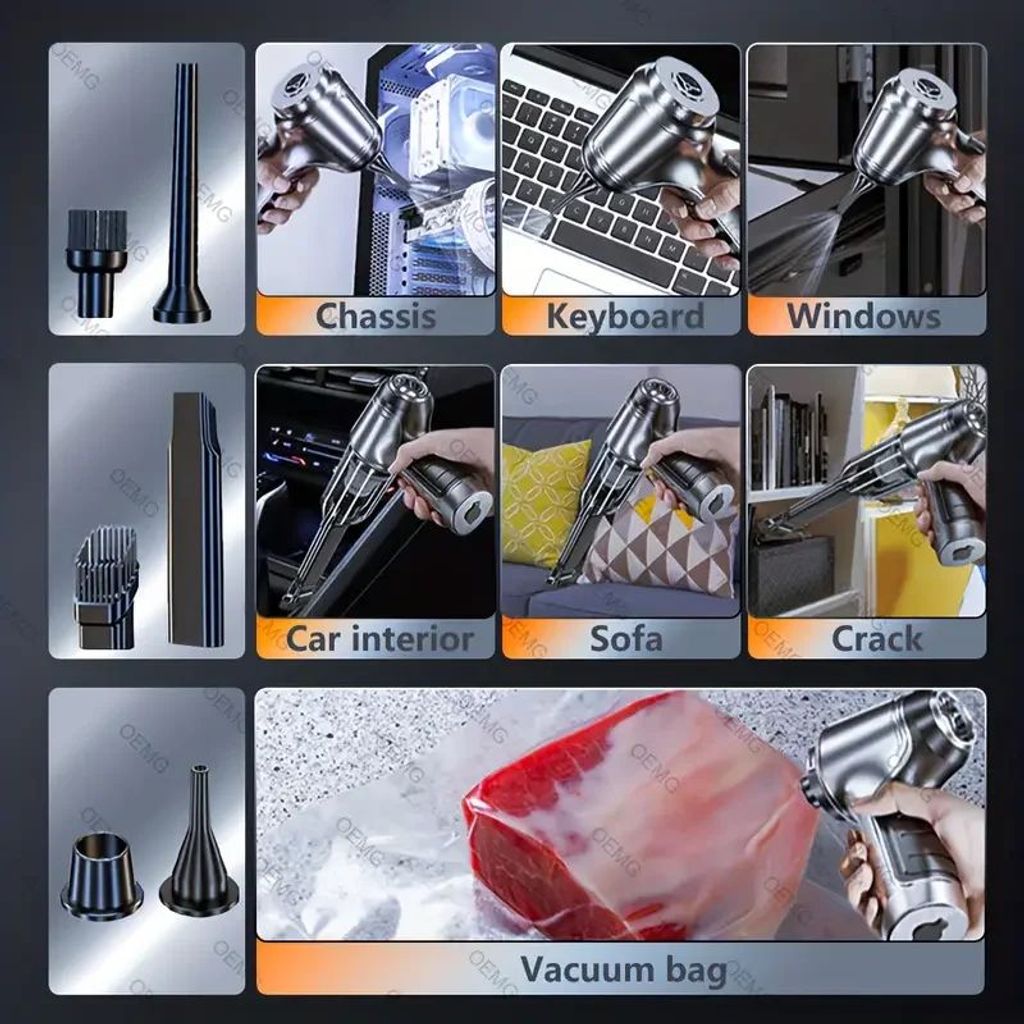 Strong Suction Cordless Vacuum Cleaner – 2-in-1 Handheld and Blower, USB Rechargeable with Dusting Brush for Home & Car