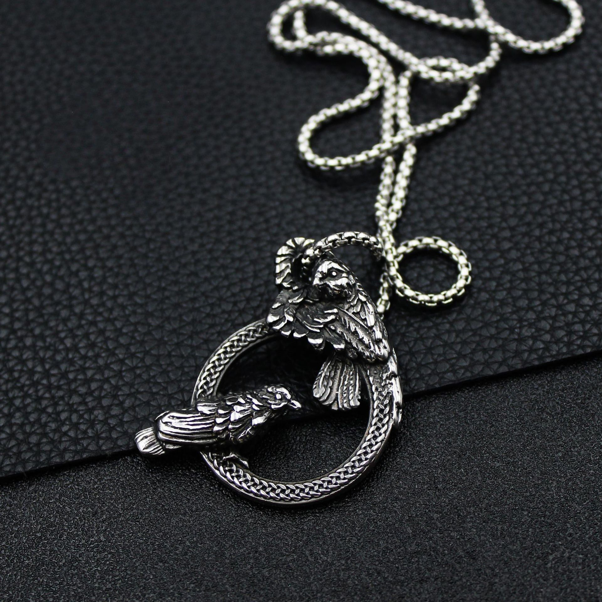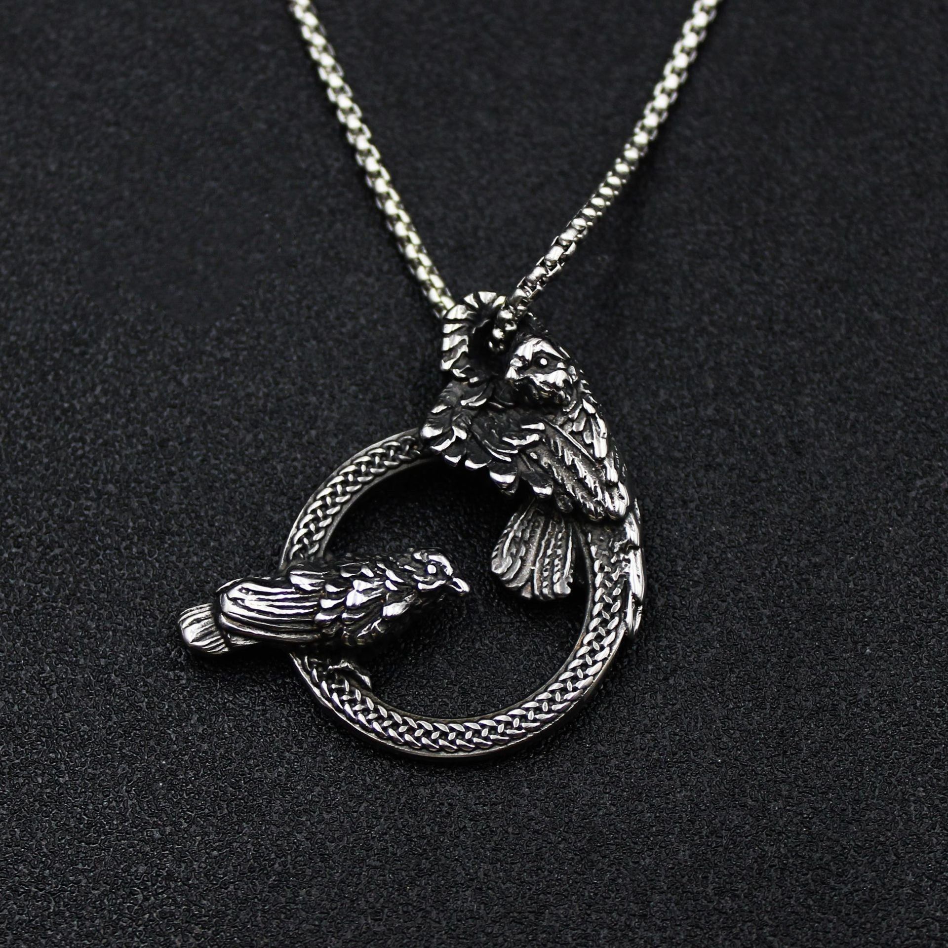 Viking Ring Crow Pendant Retro Trendy Titanium Steel Necklace