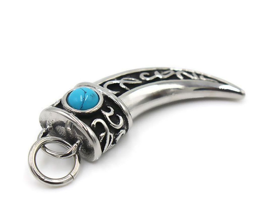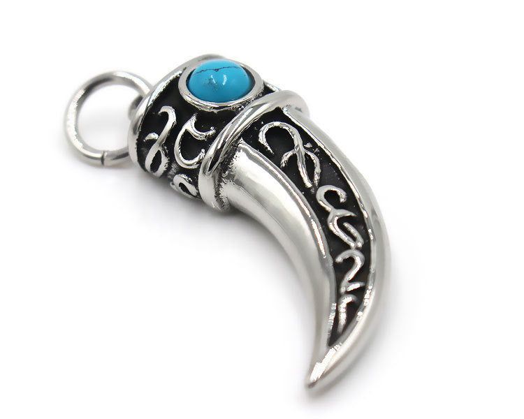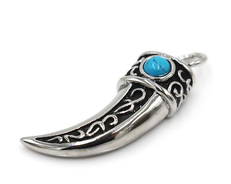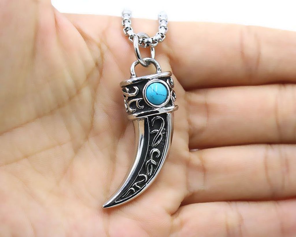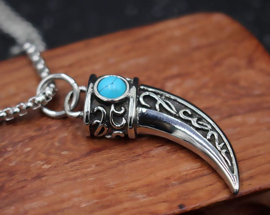 Vintage Men's Titanium Steel Wolf Tooth Blue Pine Stone Pendant
