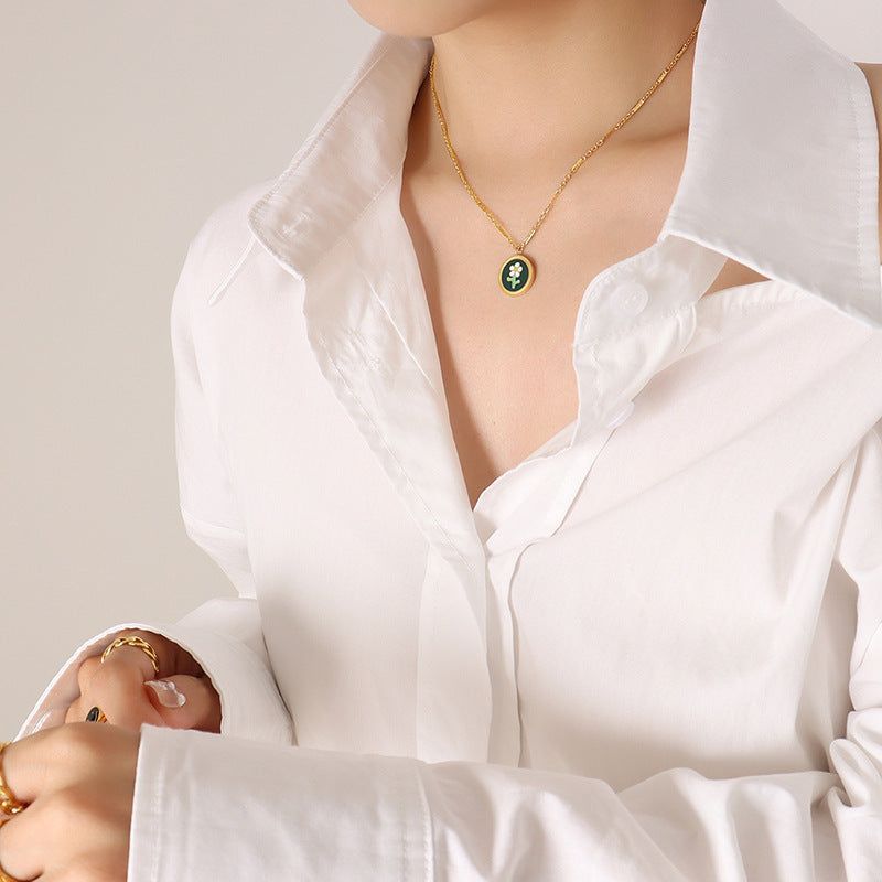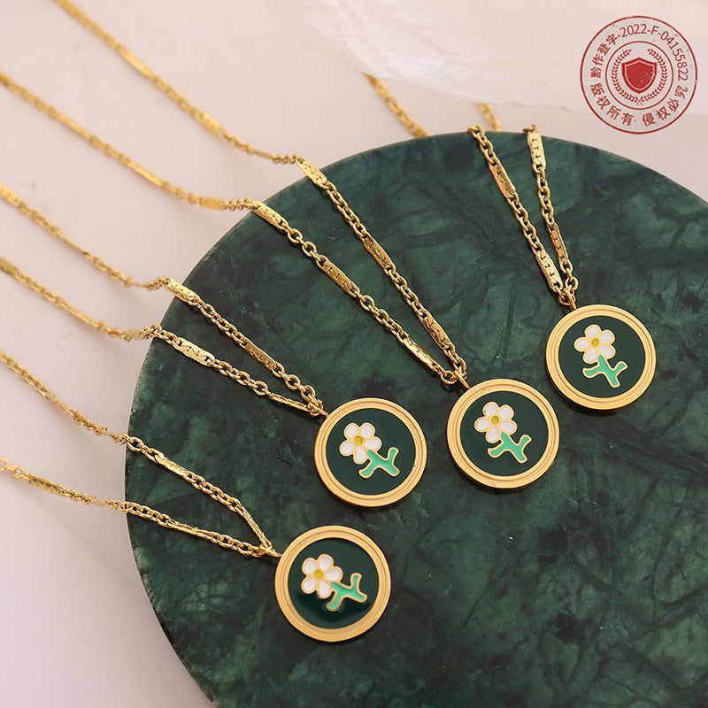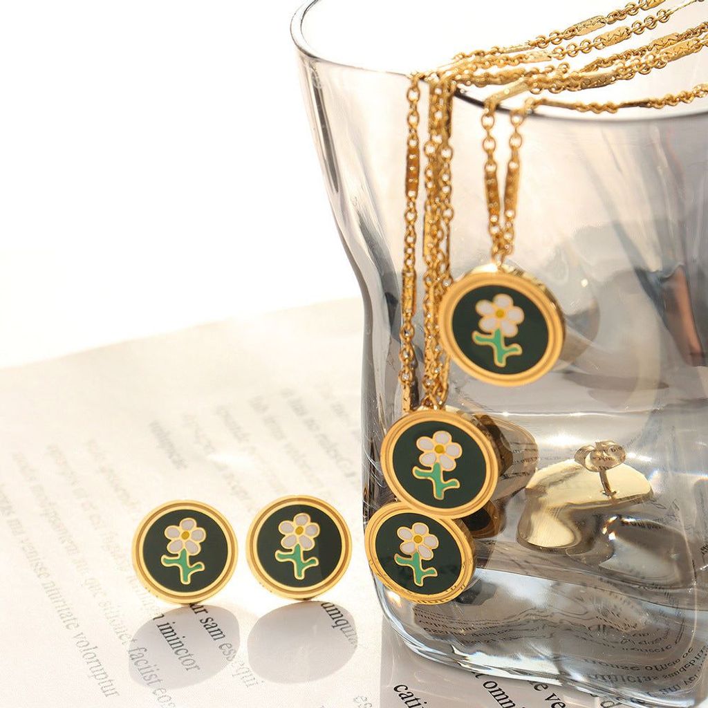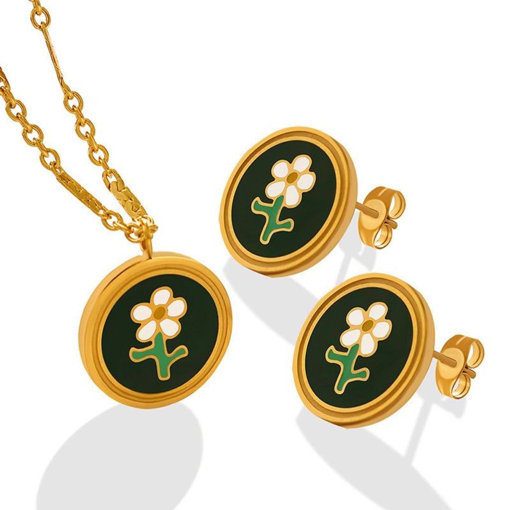Women's Vintage Oil Drop Flower Pattern Titanium Steel Earrings Necklace Set
